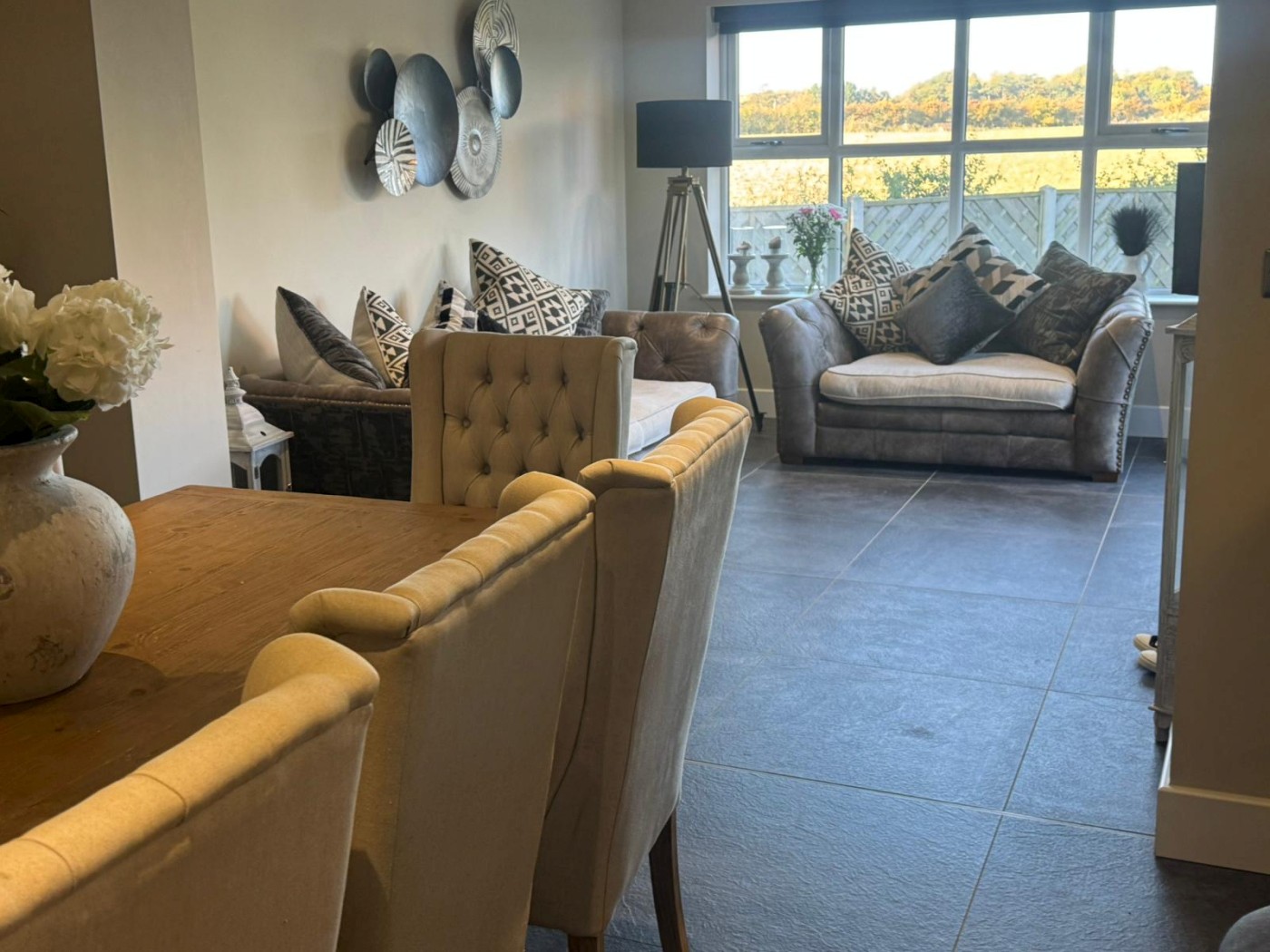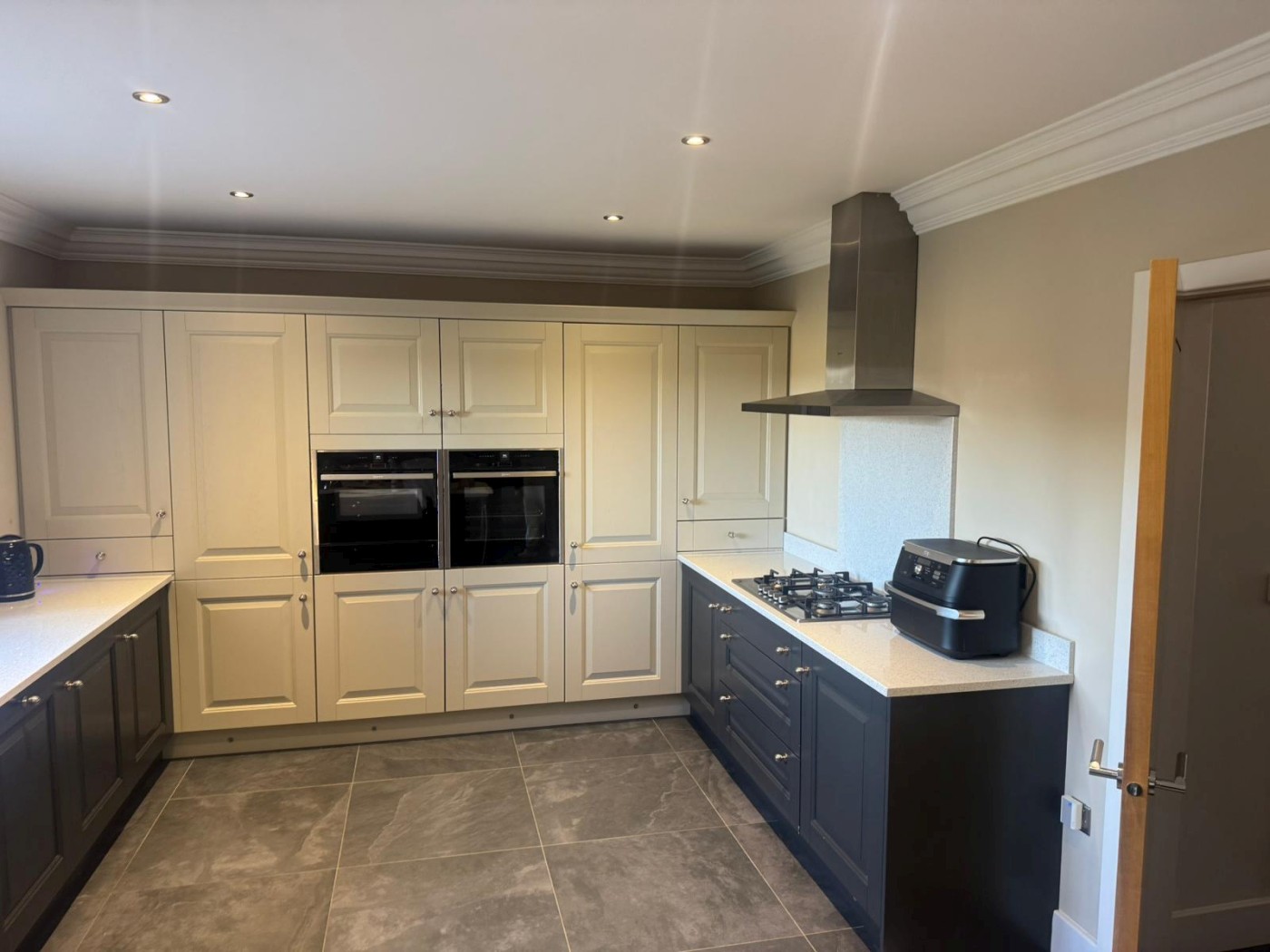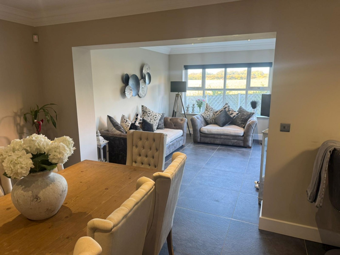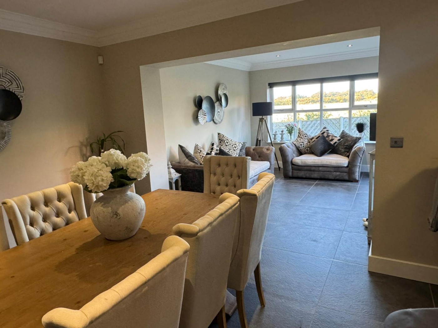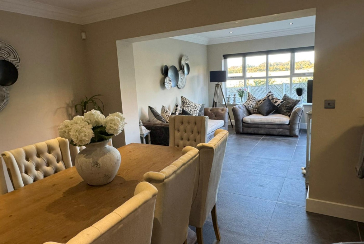 The ground floor features two elegant reception rooms — perfect for entertaining or relaxing with family — along with a stylish modern kitchen and dining area designed for everyday living. The home offers three well-appointed bathrooms, including a luxurious en-suite to the master bedroom.